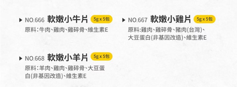 寶貝餌子666軟嫩小牛/雞/羊片(5g*5包一串,寵物第一網|金林寵物